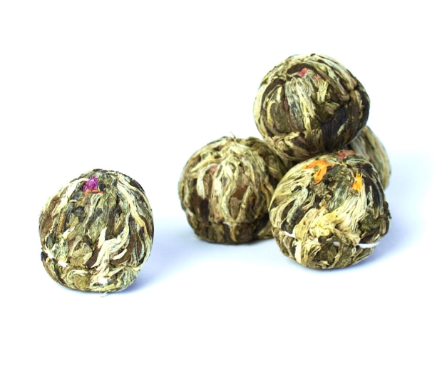 Herbata „kwitnąca” jest to ręcznie zwijana w kulkę herbata zielona z dodatkiem różnych kwiatów. Delikatne listki tej herbaty pozostawione są po ich zbiorze do zwiędnięcia, następnie są suszone i poddawane parze wodnej. Ten proces ułatwia osiągnięcie sprężystości liści niezbędnej do ręcznego ich zwijania.