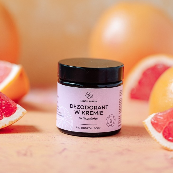 Naturalny dezodorant w kremie o świeżym, cytrusowym zapachu grejpfruta z orzeźwiającą nutą mięty.