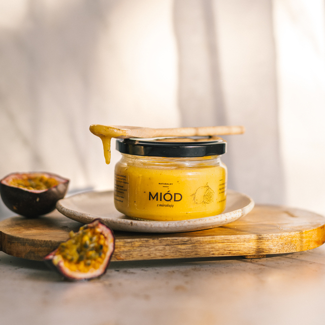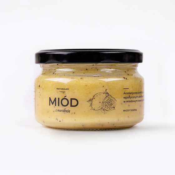 Połączenie daje możliwość korzystania z dobrodziejstw miodu wielokwiatowego oraz świeżej marakui,