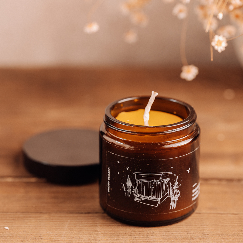 Naturalna świeca z wosku pszczelego w szklanym słoiczku 120ml.