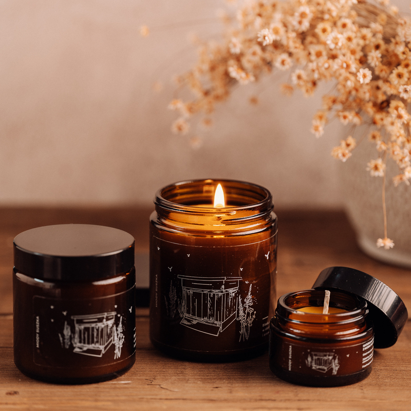 Świeca z wosku pszczelego w słoiku (średnia)