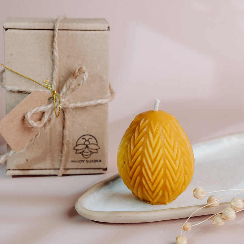 Świeca zapakowana jest dodatkowo w celofanowy woreczek-chroni to świecę przed zadrapaniami, utrzymuje naturalny zapach wosku pszczelego.