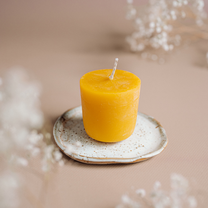 Płomień świecy z wosku pszczelego zapewnia przyjemne, ciepłe światło, a zapach relaksuje i odpręża.